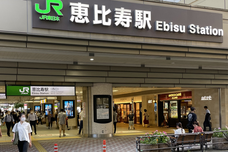 ②駅を出ますと、バスロータリーの左手にあります「アトレ恵比寿(新館)」がありますので道なりに進んでください。