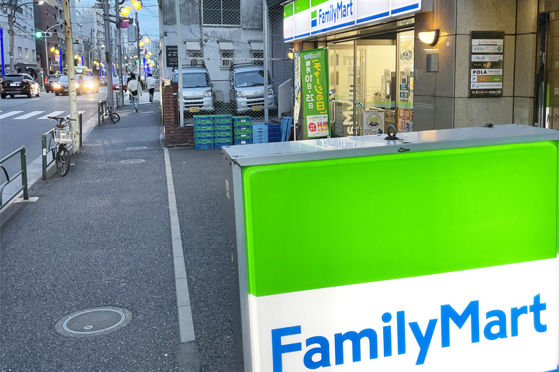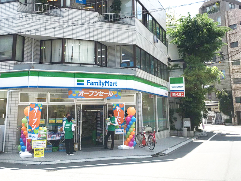 ③『恵比寿4丁目交差点』まで進みましたら、交差点手前の右側に『ファミリーマート(恵比寿4丁目店)』が御座います。