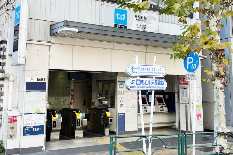 広尾ルームまでの道順①東京メトロ「広尾駅」(2番出口)を出て頂きます。