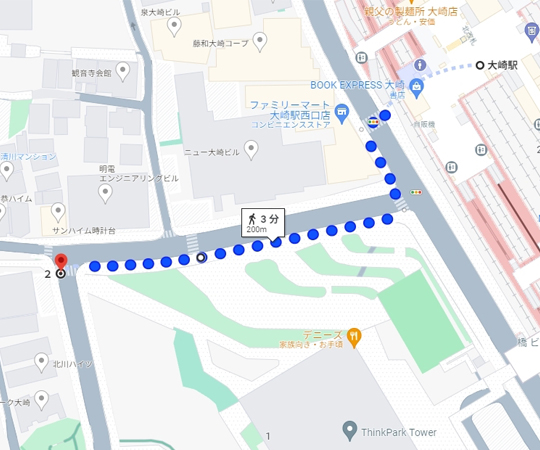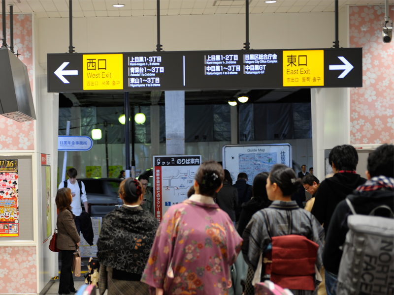 ①東急東横線、東京メトロ日比谷線「中目黒駅」正面改札から出て「西口方面」へまっすぐお進みください。