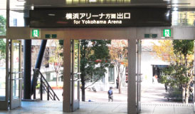 ②左手にお土産店、右手に新幹線改札の間を「横浜アリーナ方面出口」へ。